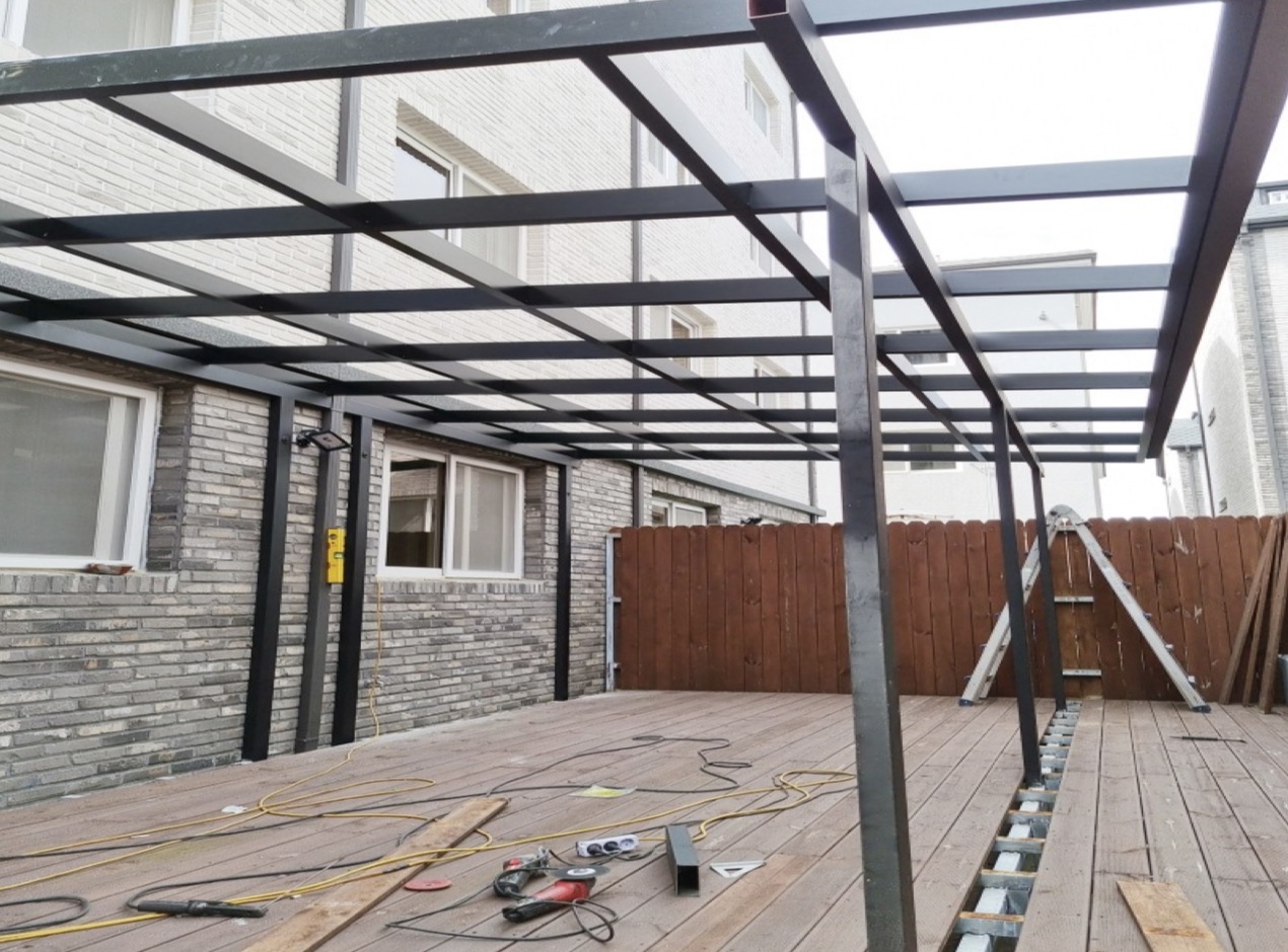 비가림·햇빛 가리개 등 외부 시설을 세련된 디자인으로 제공하는 솔루션을 뜻합니다.