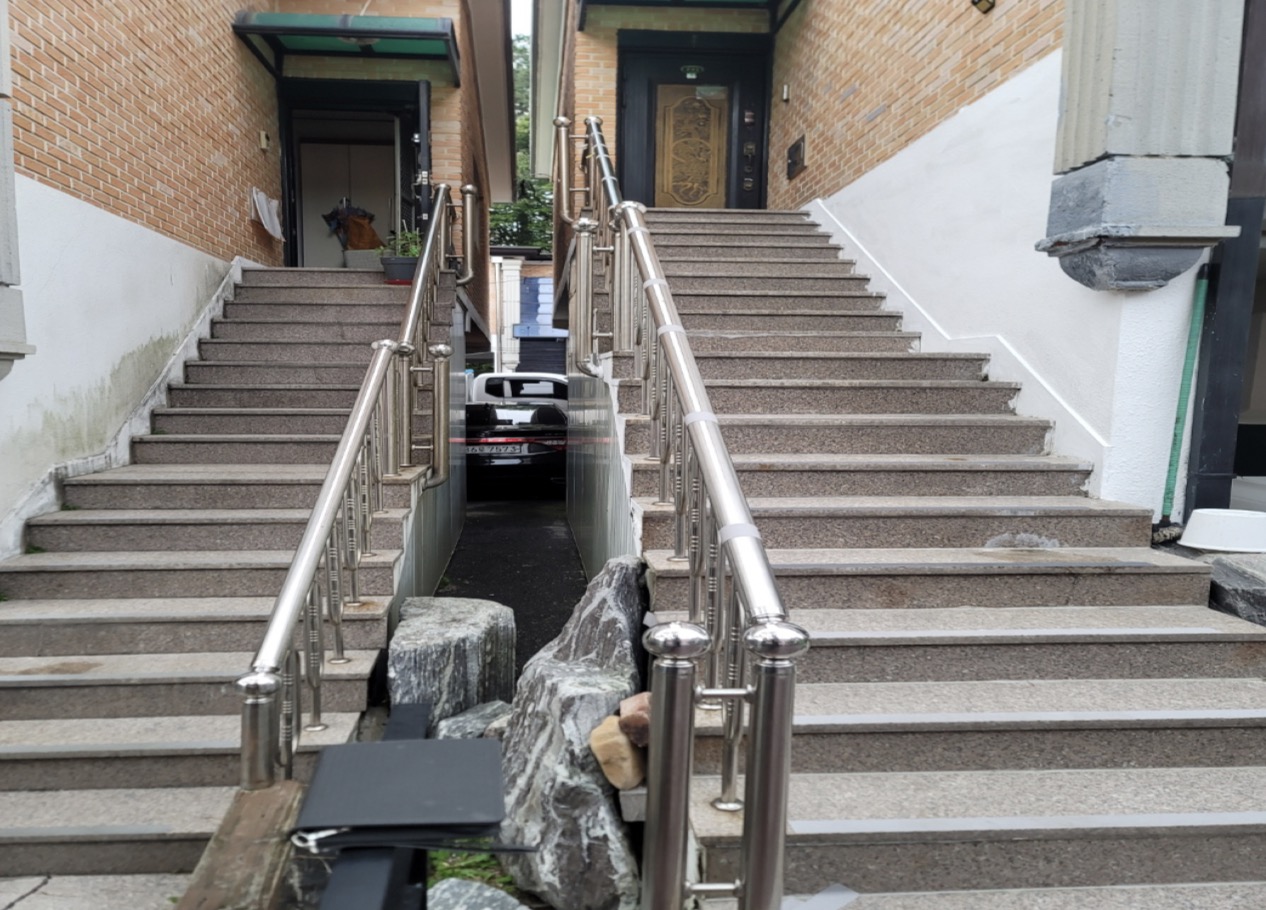 브라켓 고정과 벽체 접합부 방수(실리콘 마감)가 핵심. 누수 방지와 안전성 확보가 중요.